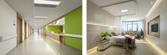 主要包括護士站、診室、治療室、病房及病房衛生間等區域,這些區域在平面布局上注重便捷的功能排布;在裝飾材料選擇上要注意具備吸音降噪、抗菌耐污、耐擦洗的特征;在采光照明上要求防眩光、高顯色,注意漫反射光與直接照明相結合。