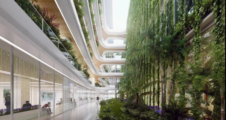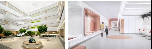 花園式醫院追求綠意盎然自然治愈,讓空間充滿生機和活力。主要通過內裝設計來打造,可以采用局部綠植墻點綴空間,合理利用采光中庭及庭院,實現室內室外借景,也可以局部植入綠植景觀小品,增強細節感。