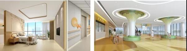 讓空間有文化底蘊體現文化自信,從醫院定位、專家介紹、歷史文化展示等方面融入院區文化。在醫療街區域可考慮設置名醫展示墻,融合平面和立面造型,凸顯醫院人文形象;在服務臺后方可設置醫院形象墻,烘托醫院VI及醫院文化氛圍;在休息區可考慮引入環境圖形設計,烘托輕松活躍的氣氛,同時嵌入醫院文化。