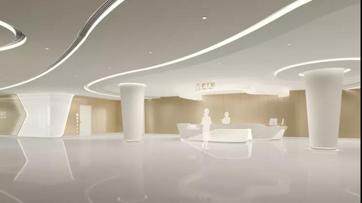 公共空間尊貴感體現首先在于設計選材,宜采用天然高檔大理石、覆膜木紋鋁復合板,紋理質感好,板幅大,品質感強;家具選擇偏向于酒店化,提升空間檔次感,整體色調溫馨柔軟,加強去醫療化的體驗感;在門診大廳、腫瘤中心門廳、體檢門廳、電梯廳等區域,層高配合為3.8米以上,空間大氣檔次感強;在咨詢、導診臺設無障礙區滿足不同人群,提升服務體驗感。