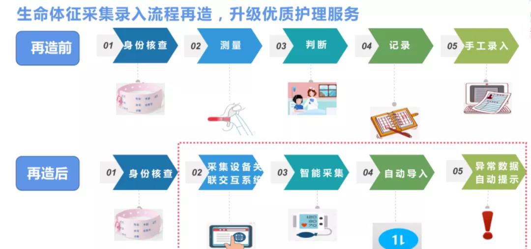 “生命體征采集與錄入”流程就在一些方案的支持下得到了非常方便的再造,其帶來的價值散見于多個醫(yī)院用戶的衛(wèi)生經(jīng)濟學角度的效果探究。我們期待類似研究多多益善,基于更多的觀察與分析,來共同探索和狀貌這種工作的真實社會價值。